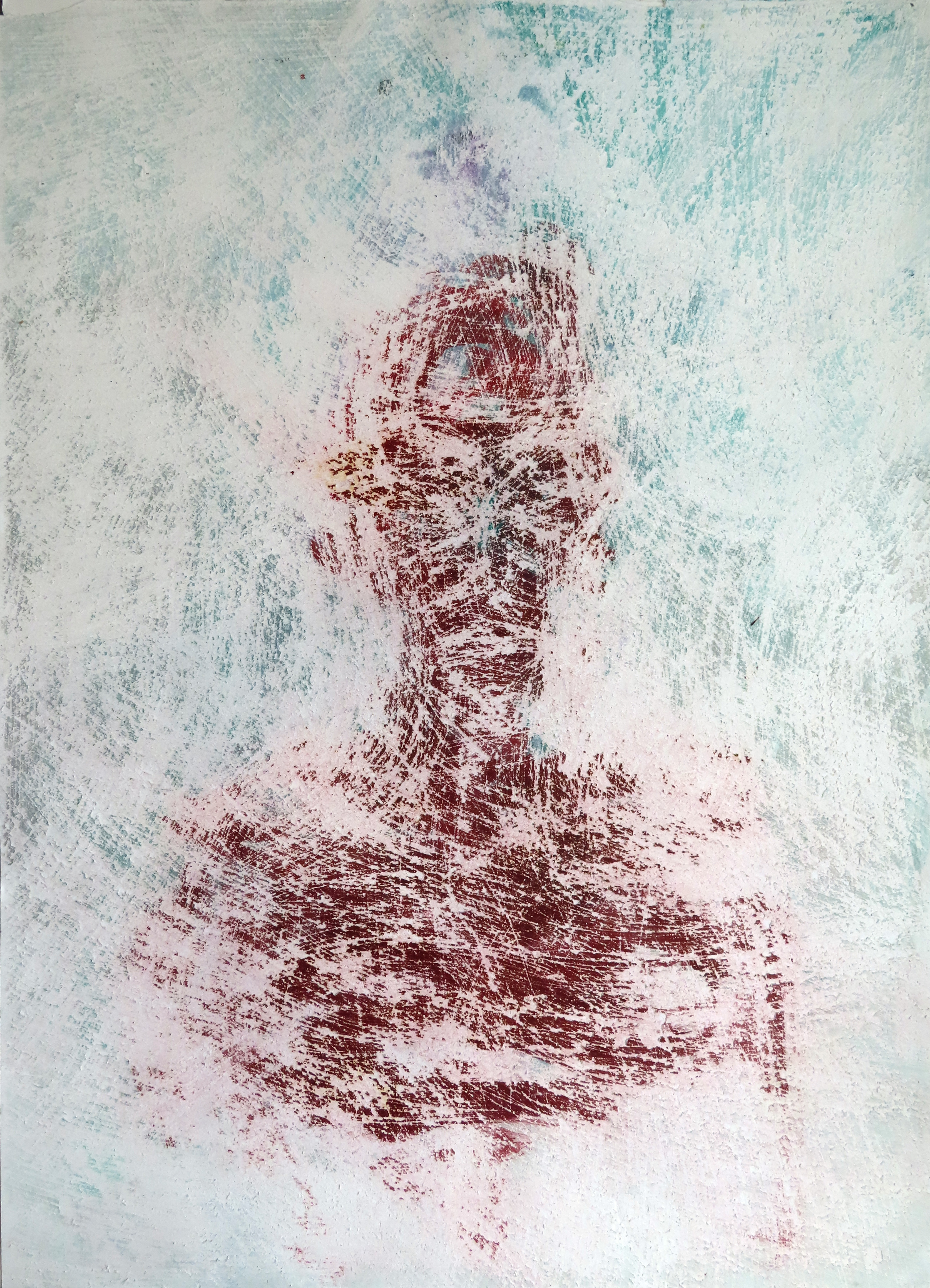 Je dessine dans la couleur, gratte, efface, superpose afin de réécrire et faire émerger ces figures comme autant de palimpsestes contemporains.