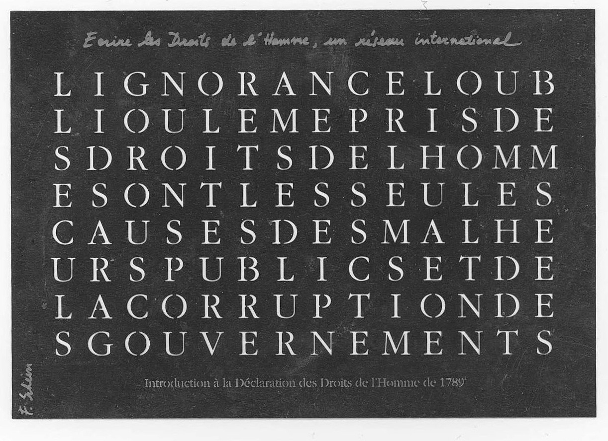 Françoise Schein est artiste et professeure de pratiques artistiques à l’ésam Caen/Cherbourg. Elle a eu une formation d’architecte et d’urbaniste à Bruxelles et à New York.Elle centre son travail artistique entre la cartographie et les droits fondamentaux. Elle a réalisé des nombreuses œuvres monumentales pérennes qui s’insèrent dans les villes et dont la production réunit de multiples intervenants créant une transversalité entre l’art, l’urbain, la géographie, le politique et le sociologique. Elle a fondé l'association Inscrire qui développe des projets participatifs dans le monde entier. Artiste autant que citoyenne, son travail s’enrichit de collaboration avec d’autres artistes et citoyens à qui elle offre des lieux d’expression à l’intérieur de son travail. Son travail de recherche s'exprime en dessin, sculptures, objets en matériaux très divers et vidéos.