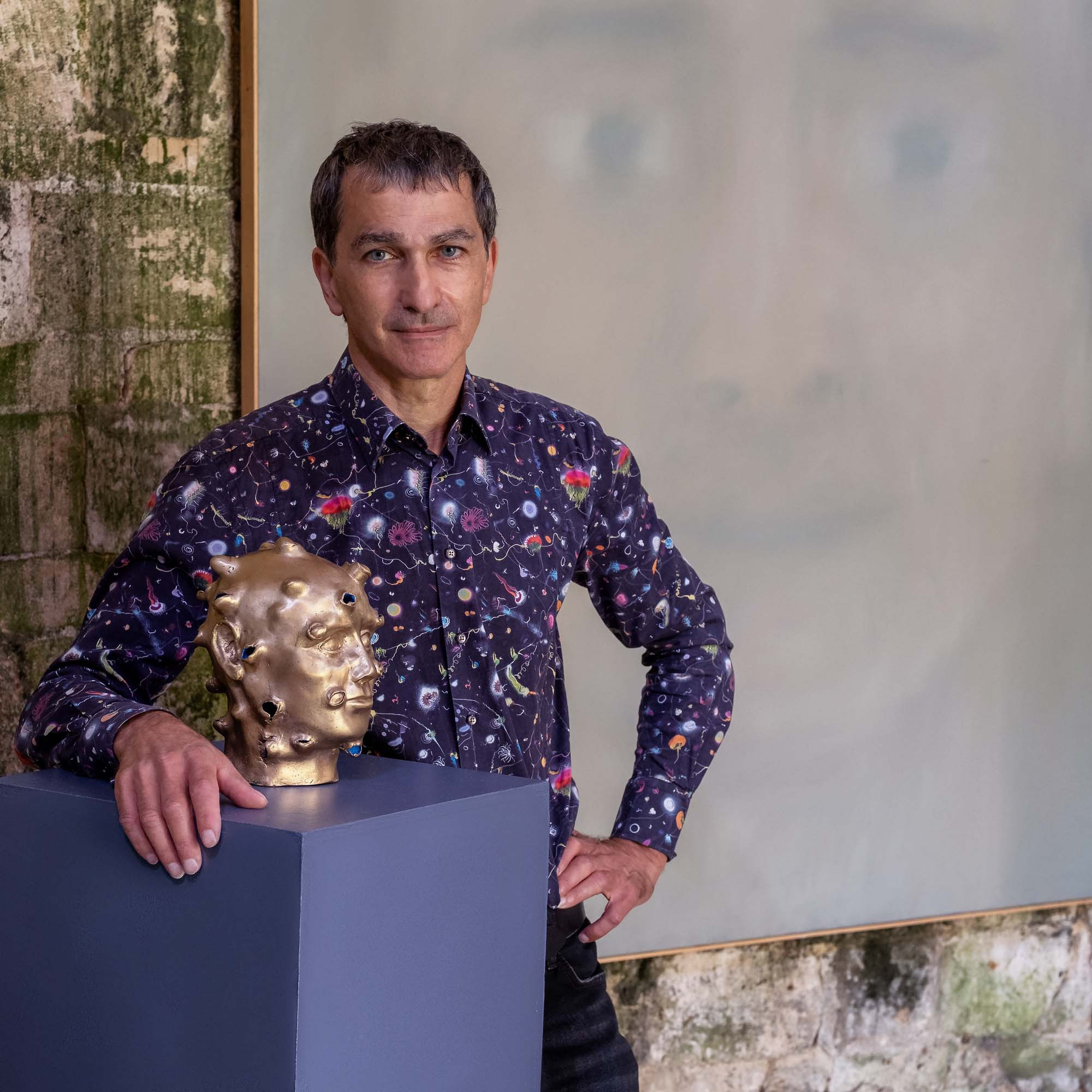 "J'ai toujours été passionné par l'archéologie , et par le monde du vivant, je suis toujours émerveillé par le fait que tous les êtres vivants ont des points communs. Dans mon travail artistique il est question de cela .J'ai fait médecine pour comprendre comment fonctionne l'être humain au niveau anatomique biologique et psychologique , mais l'être humain a quelque chose de plus qui ne peut pas être expliqué par ces sciences . J'utilise les arts plastiques pour compléter cette quête ... Mon travail a toujours une relation de prés ou de loin avec l'être humain - Soit par des portraits , en peinture, d'humains dépersonnifiés - Par des photographies , vidéos ou performances où l'on voit évoluer des sculptures de ces mêmes têtes en glace ( matériau que j'utilise à cause de son omniprésence dans le monde du vivant) – Ou encore par des sculptures en ciment de ces mêmes têtes qui sont parfois disposées en installations et qui renvoient à l'archéologie .J'explore aussi le microcosme biologique de notre organisme et ses relations avec le monde qui l'entoure ,par l'observation mais aussi par l'imagination qui me permet de rêver à monde biologique encore différent. Mon travail incite aussi à réféchir aux changements et aux avancées de la médecine , de la génétique ainsi qu'aux sciences modernes qui sont capables de faire des merveilles mais qui prennent aussi des risques sur l'avenir du vivant..."Lieu de retrait des œuvres de l’artiste