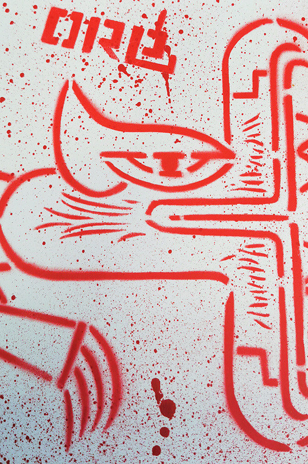 For a decade, he tagged cities across Europe. Traveling in Mexico in the 2000's, he discovered Quetzalcoatl, the Aztec god which is portrayed as a feathered serpent. This mythological icon became an essential feature of his pictorial universe.