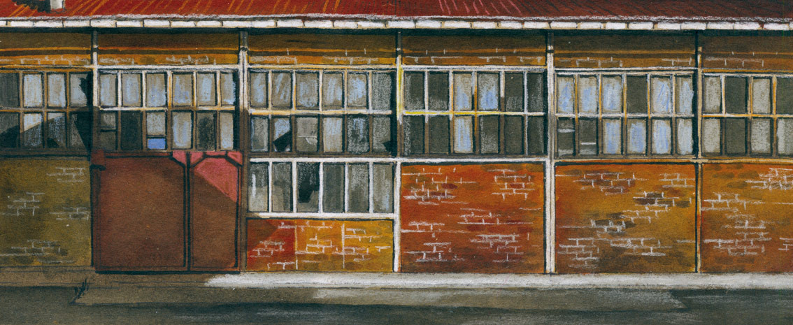 Dessin paru dans "Voie Verte & patrimoine industriel - de Ouistreham à Domfront", d'après les textes de Pierre Coftier et Alain Leménorel, éditions des Cahiers du Temps