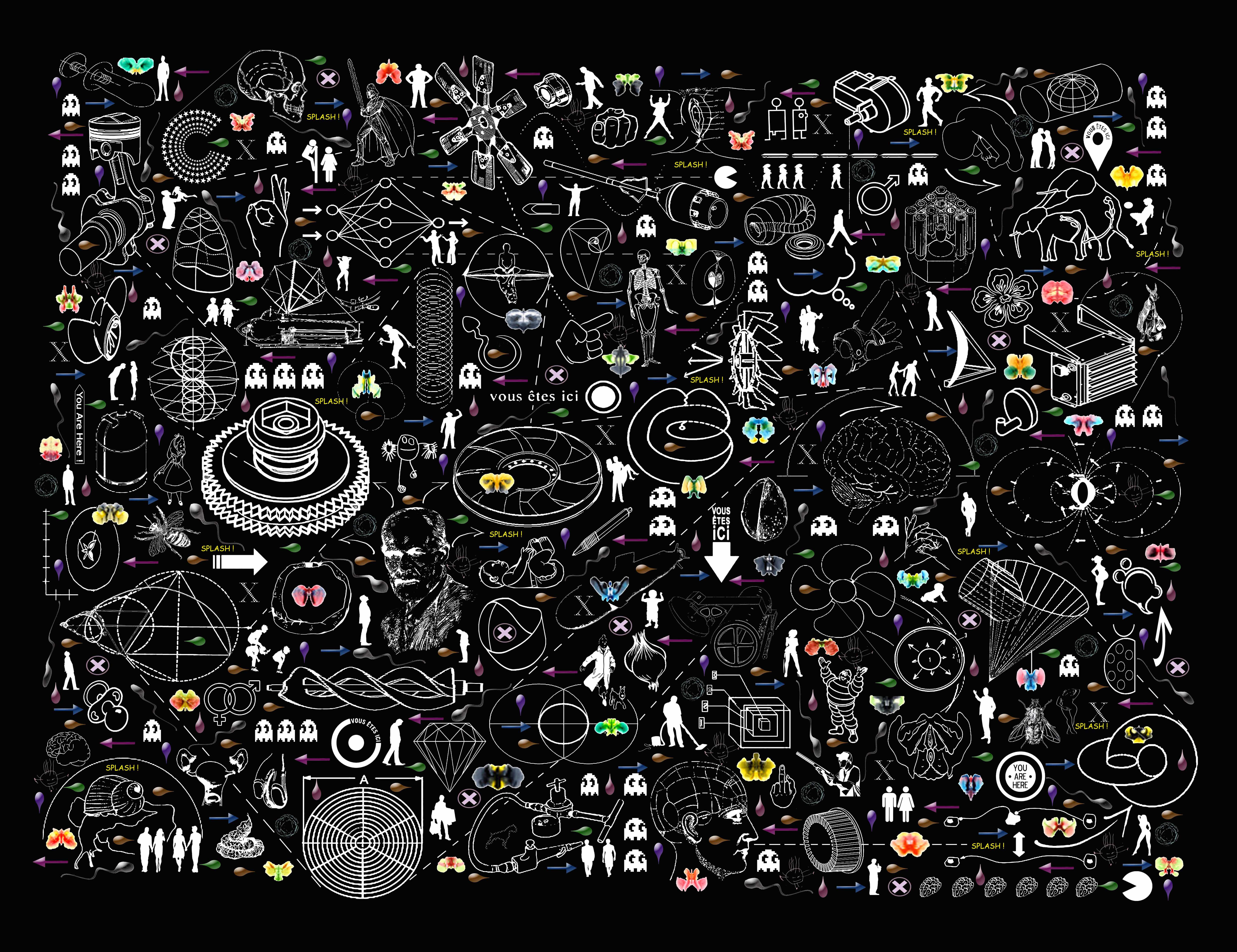 Bien que chaque oeuvre puisse fonctionner de manière autonome, elle n’est qu’une étape intermédiaire et évolutive d’un work in progress conçu sous la forme d’un gigantesque rhizome dont les articulations naissent chaque fois de la volonté d’établir des liens tout en représentant la prolifération de la pensée.