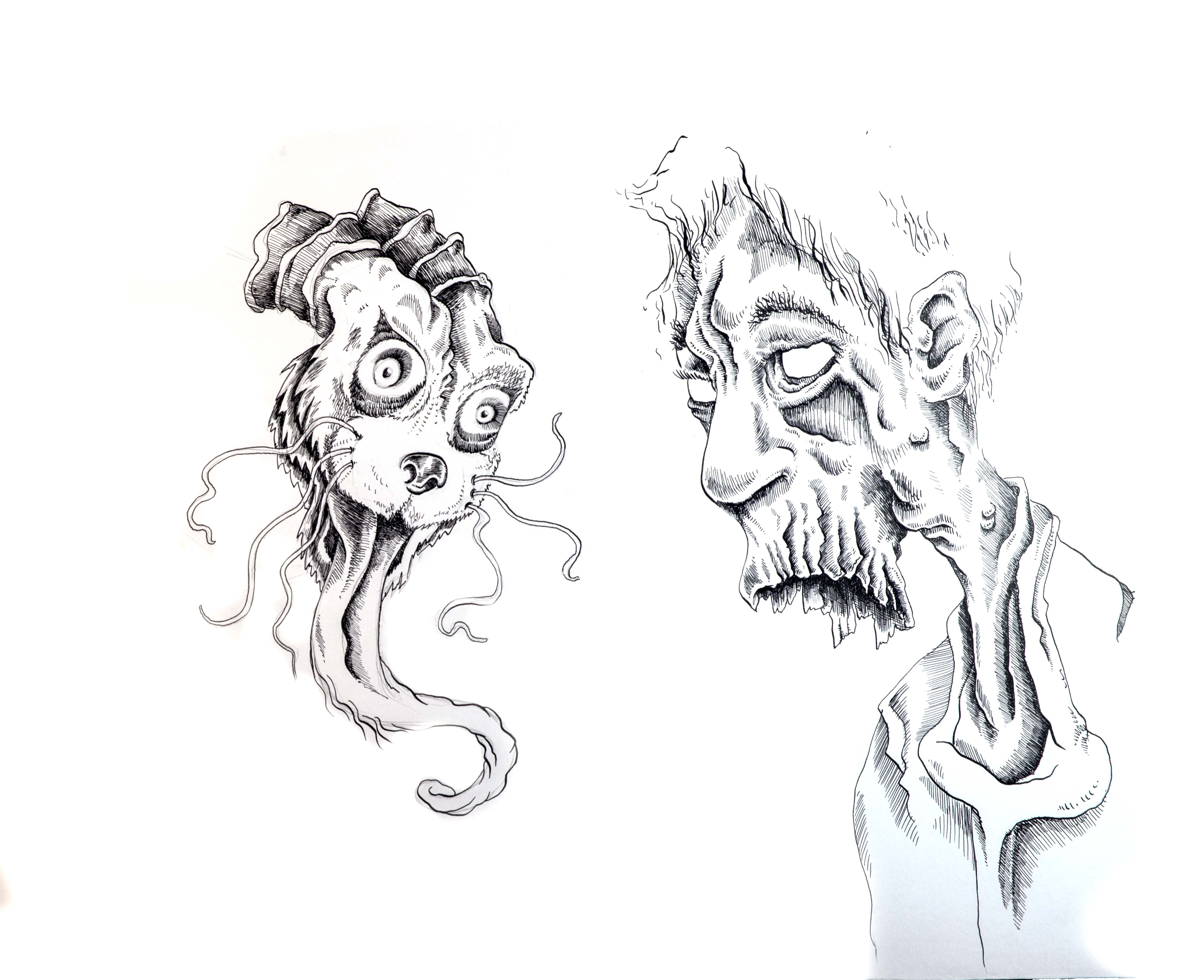 Fallait pas donner ta langue au chat, encre de chine, cette oeuvre fait partie du cycle "ByeBye 2020", exploration du confinement et de l'isolement en pleine campagne.