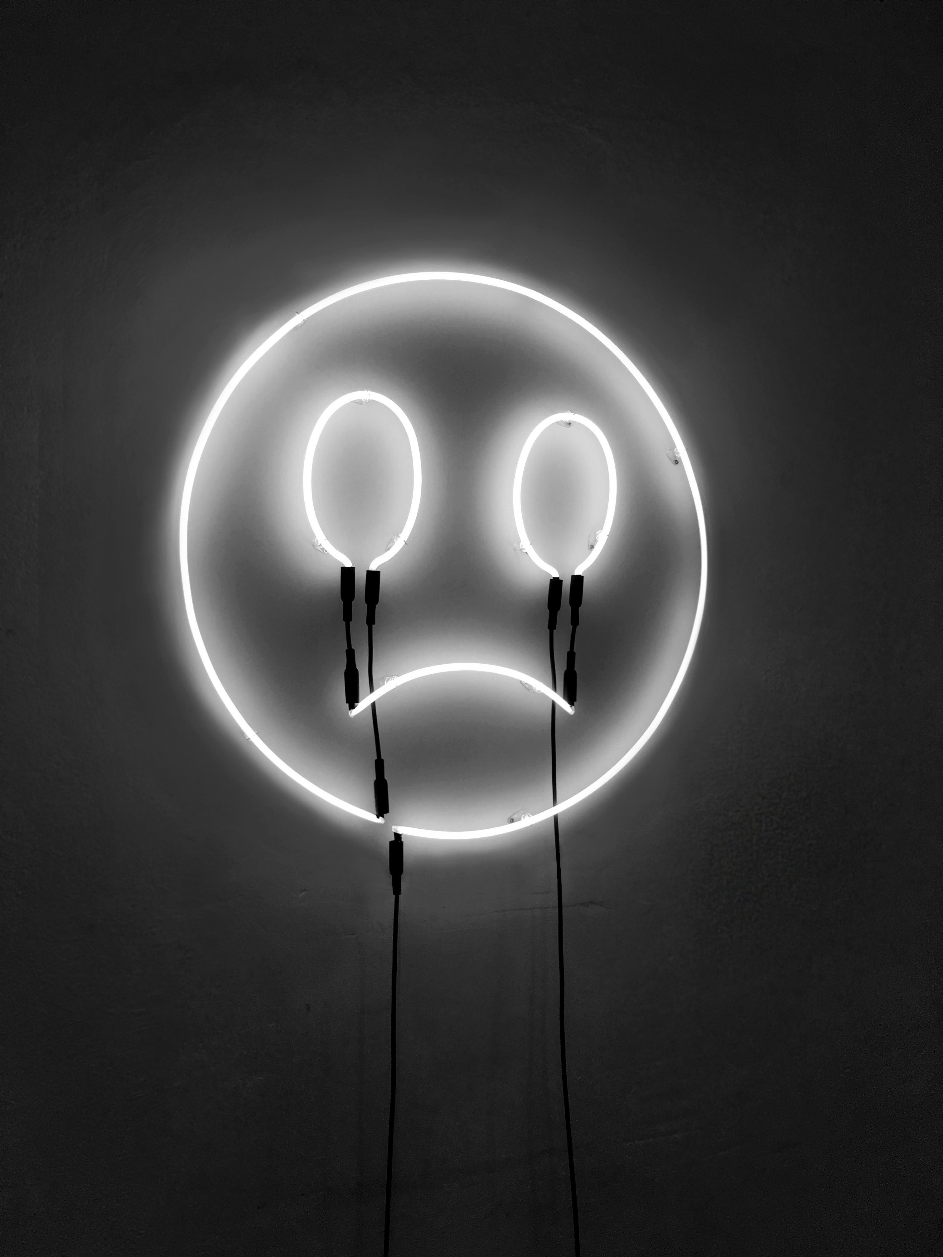 Smiley en néon soufflé, couleur blanc neutre, 2019 Diamètre 80 cm
