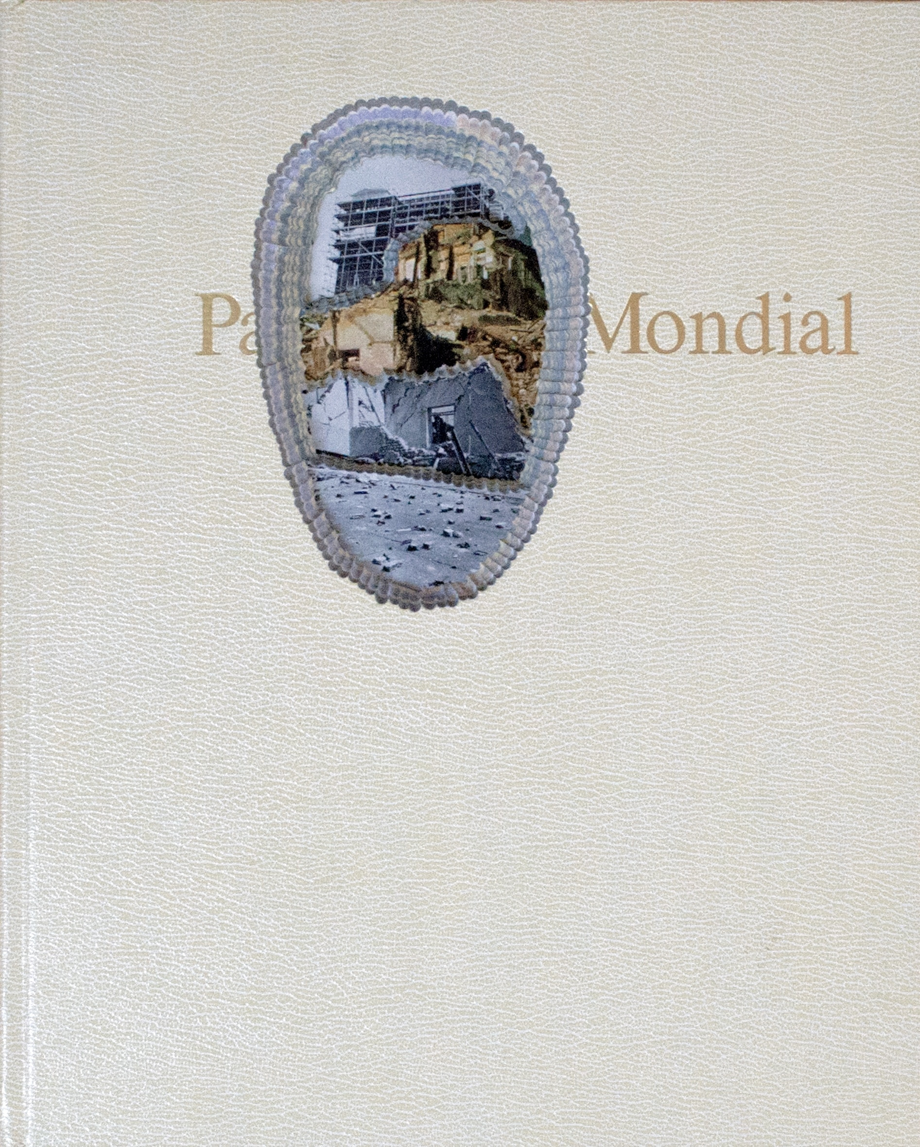 Archéologie livresque réalisée dans l’encyclopédie Panorama mondial. Les livres sont fouillés comme des carrières à ciel ouvert. Les creux réalisés à la gouge laissent apparaître, sur plusieurs étages, des images comportant des constructions dont l’état fait écho aux mutations de nos paysages contemporains. L’œuvre est vendue avec son socle mural.