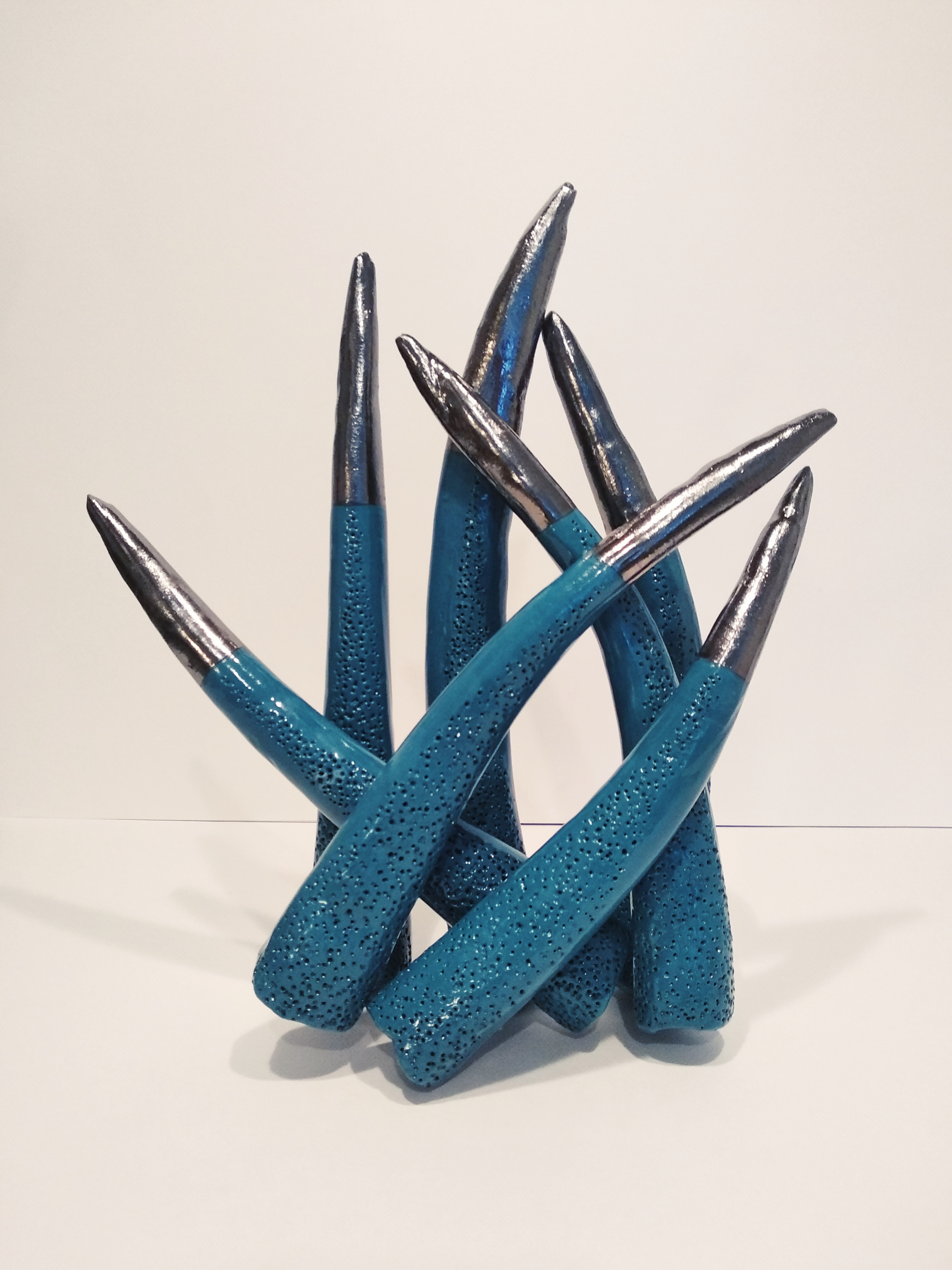 "Les Spécimens sont les produits d’une recherche sur le cabinet de curiosités imaginaire. Ce sont des formes naturelles recréées artificiellement afin d’interroger ce qui disparait, ce qui reste et ce que l’on tente de reconstruire. Elles traduisent une certaine décadence du monde, du réel. Ce sont des sortes de fossiles, des objets jadis vivants qui sont figés dans une posture rappelant tantôt des créatures marines, des animaux terrestres ou même des attributs féminins ou masculins. Cette série de sculptures que j’ai débuté en 2017 parle de l’acte de création qui vient pallier à la disparition d’un monde. l’Homme tente toujours de recréer ce qui n’est plus. Mes sculptures sont comme des morceaux de souvenirs d’un temps imaginé mais fortement inspiré du réel. Une préhistoire remaniée, un passé retravaillé : c’est ici que se situe mon geste artistique."