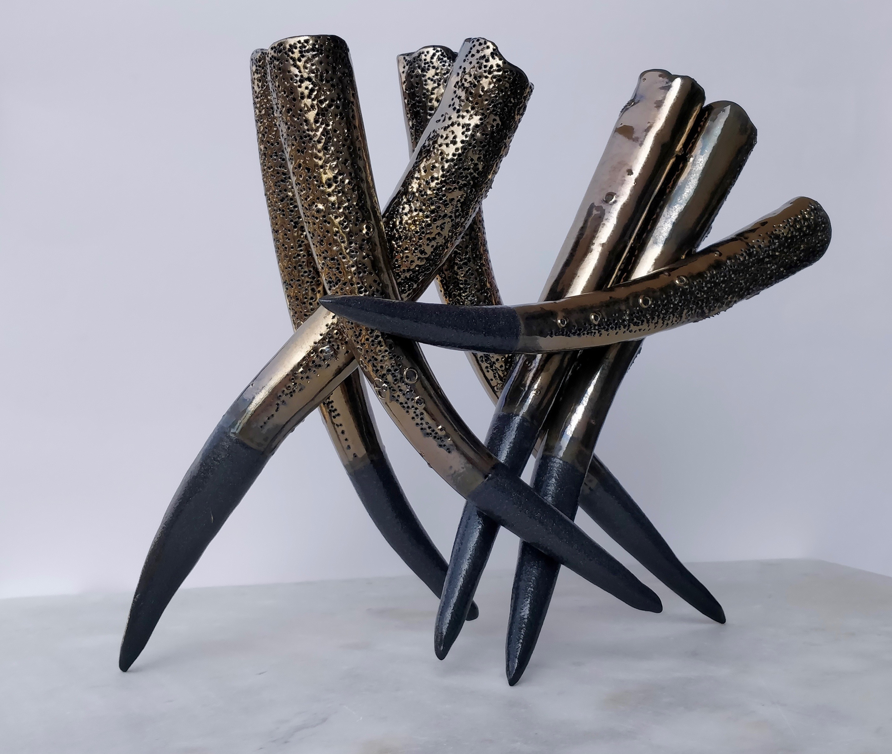 "Les Spécimens sont les produits d’une recherche sur le cabinet de curiosités imaginaire. Ce sont des formes naturelles recréées artificiellement afin d’interroger ce qui disparait, ce qui reste et ce que l’on tente de reconstruire. Elles traduisent une certaine décadence du monde, du réel. Ce sont des sortes de fossiles, des objets jadis vivants qui sont figés dans une posture rappelant tantôt des créatures marines, des animaux terrestres ou même des attributs féminins ou masculins. Cette série de sculptures que j’ai débuté en 2017 parle de l’acte de création qui vient pallier à la disparition d’un monde. l’Homme tente toujours de recréer ce qui n’est plus. Mes sculptures sont comme des morceaux de souvenirs d’un temps imaginé mais fortement inspiré du réel. Une préhistoire remaniée, un passé retravaillé : c’est ici que se situe mon geste artistique."