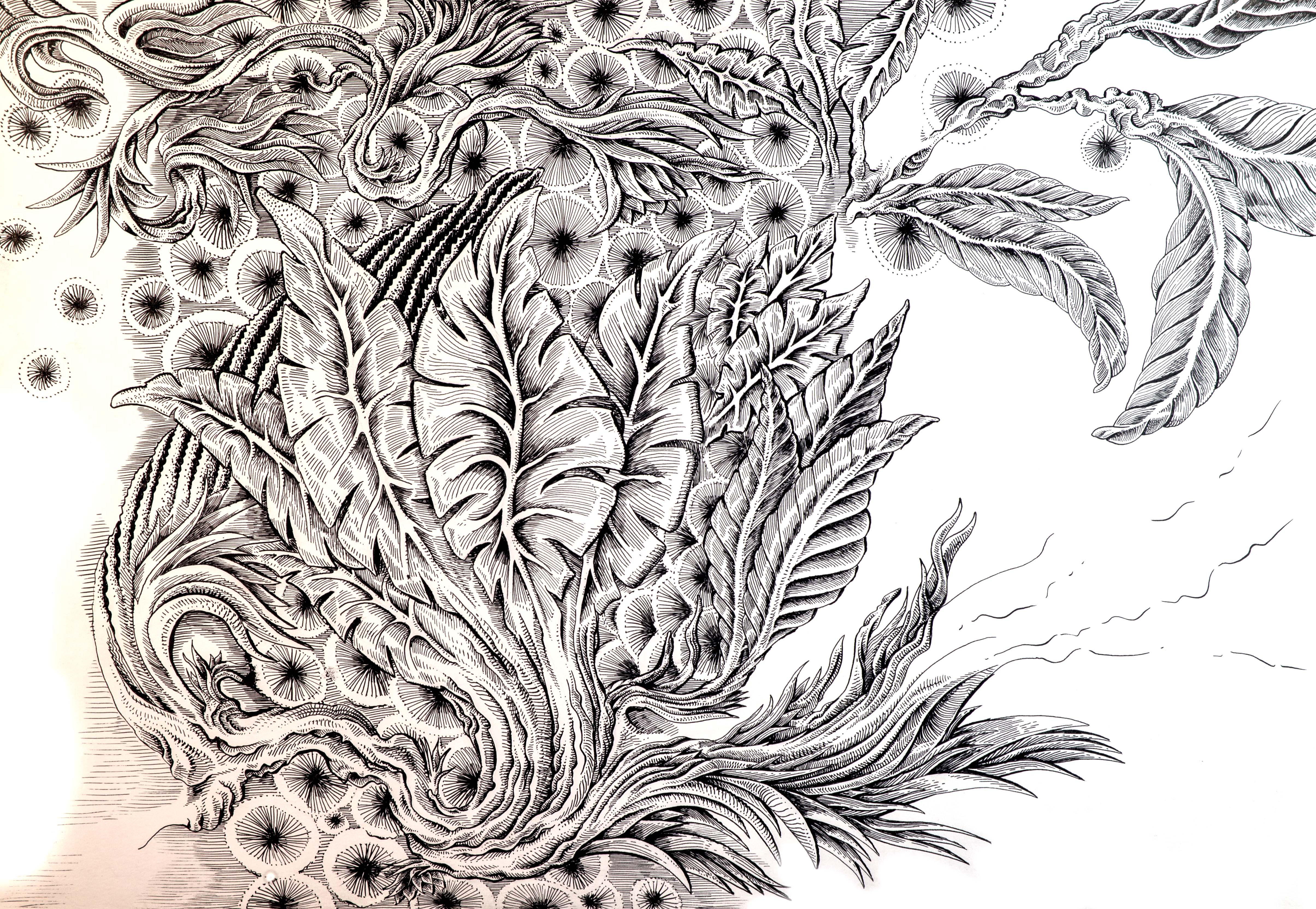 Spring, encre de chine, cette oeuvre fait partie du cycle "ByeBye 2020", exploration du confinement et de l'isolement en pleine campagne.