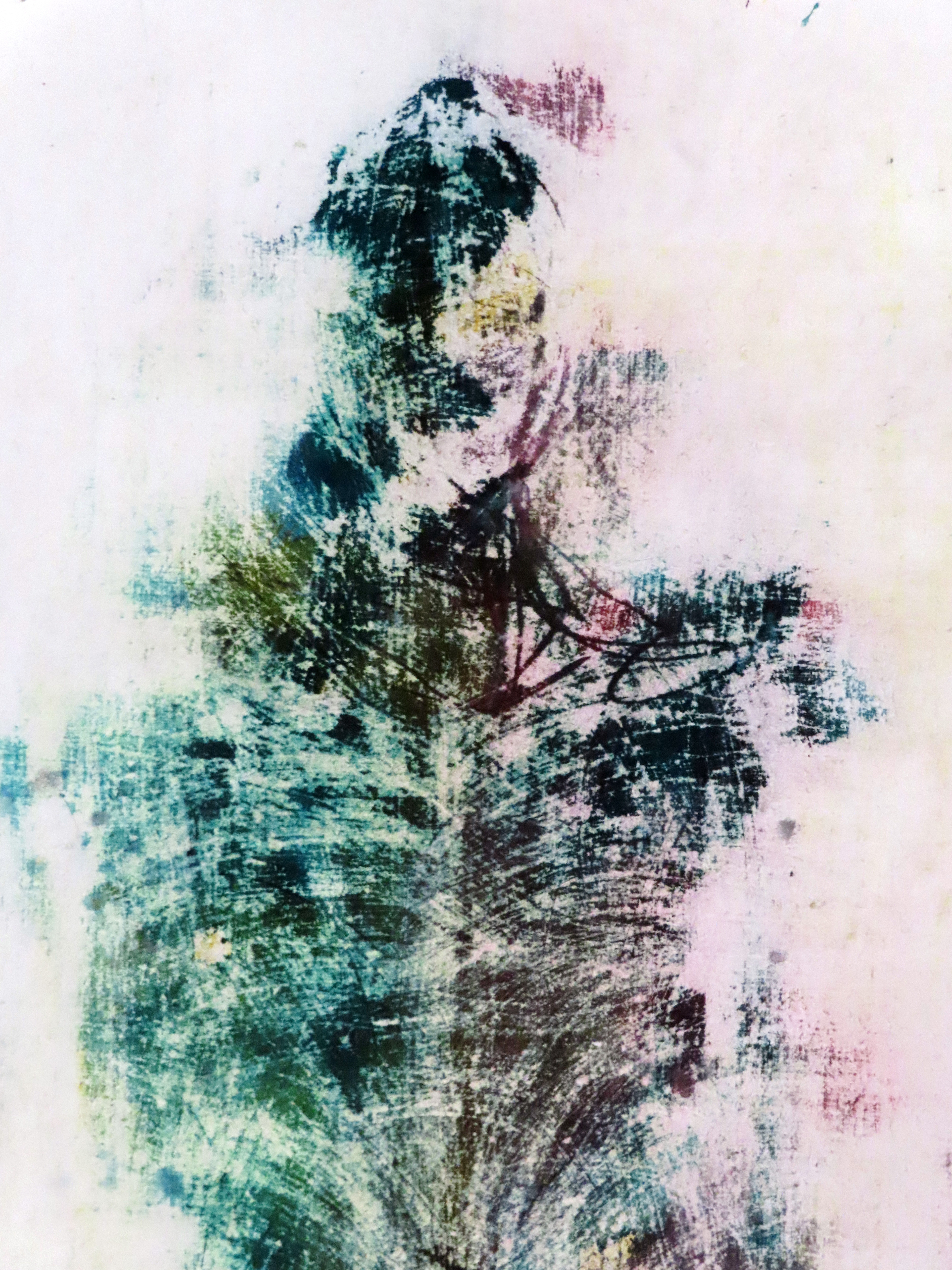 Je dessine dans la couleur, gratte, efface, superpose afin de réécrire et faire émerger ces figures comme autant de palimpsestes contemporains.